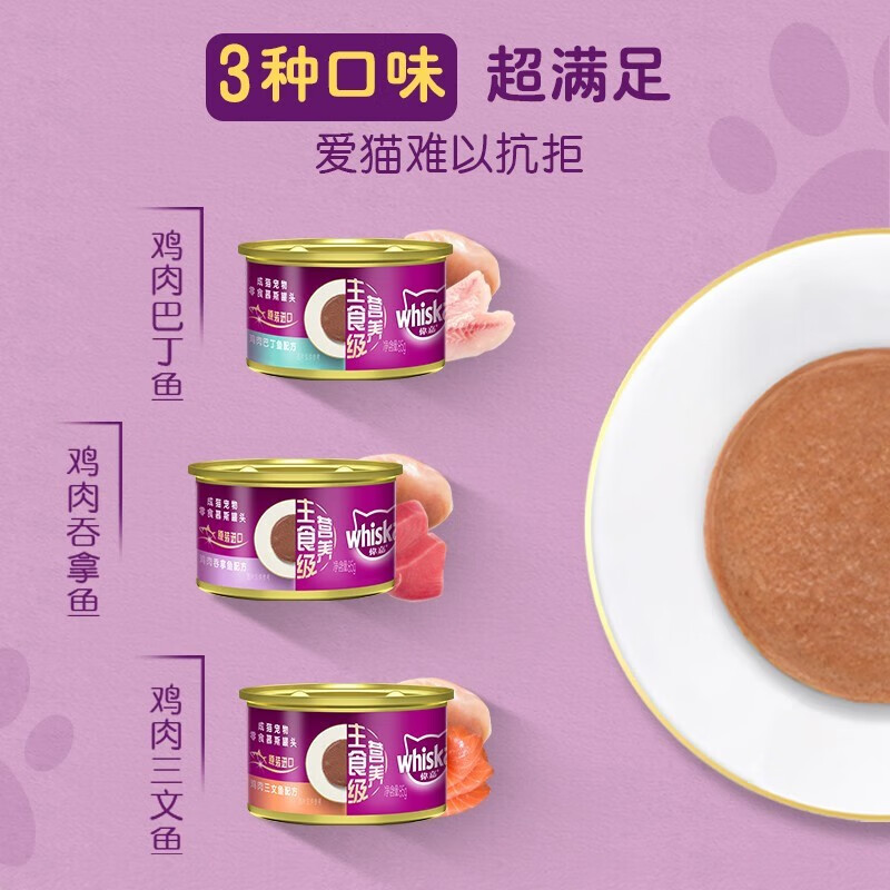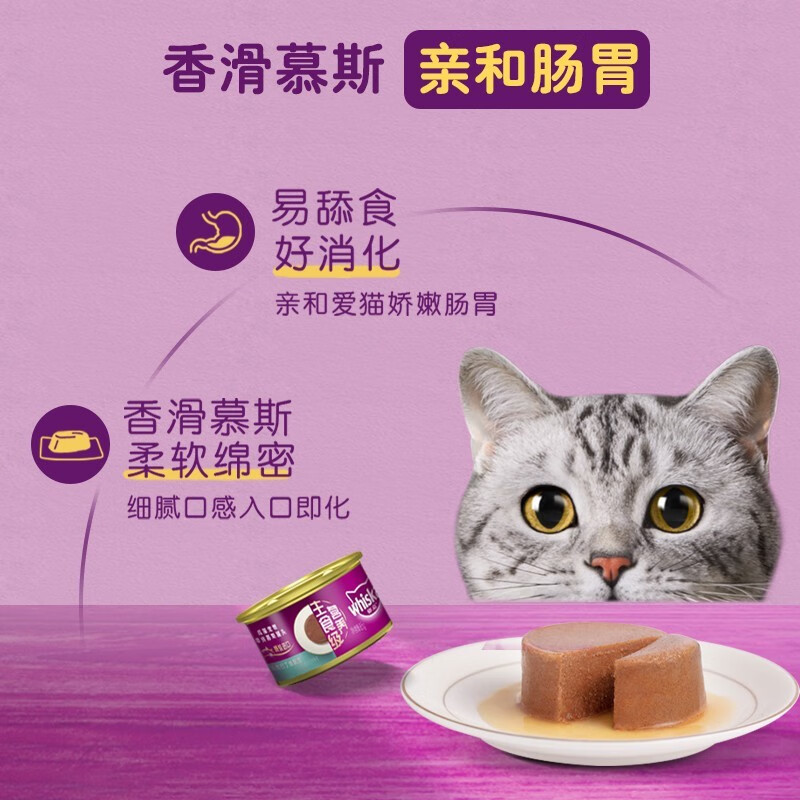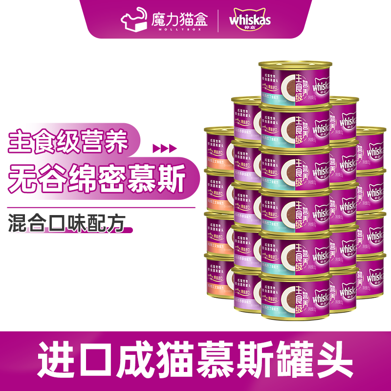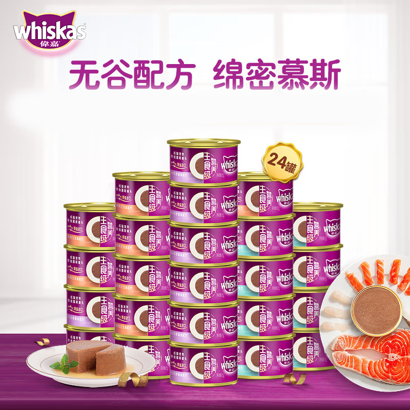 伟嘉(whiskas)猫罐头猫咪湿粮慕斯猫罐头猫咪营养主食级成猫湿粮85g 混合口味(随机) 48罐