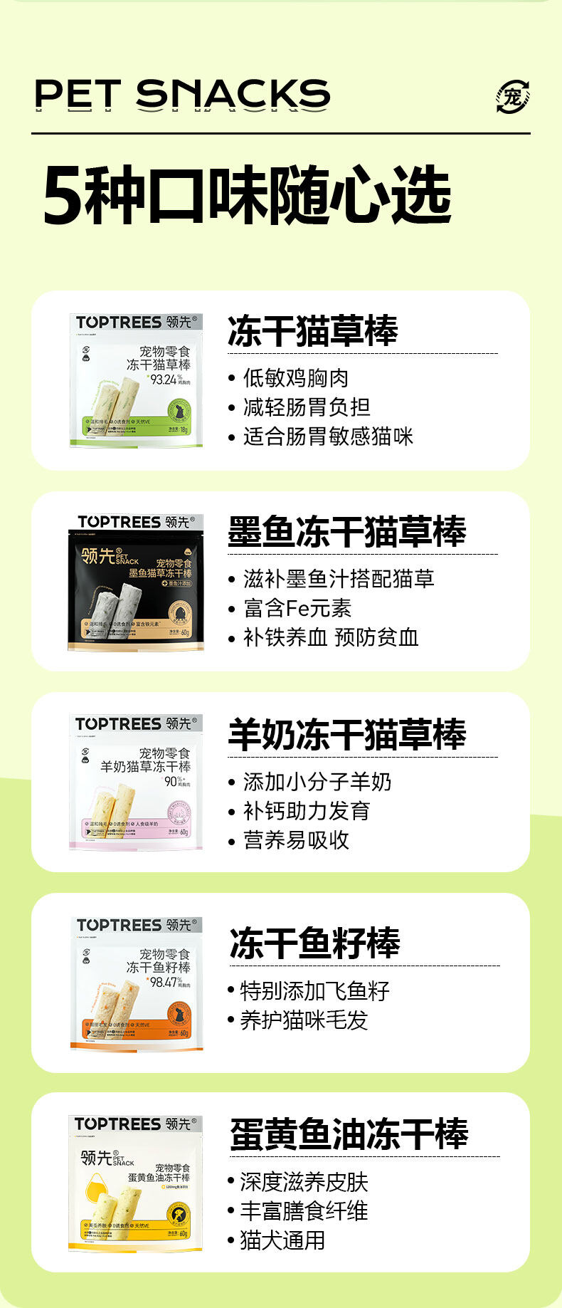 领先零食 猫咪零食冻干猫草/鱼籽棒60g