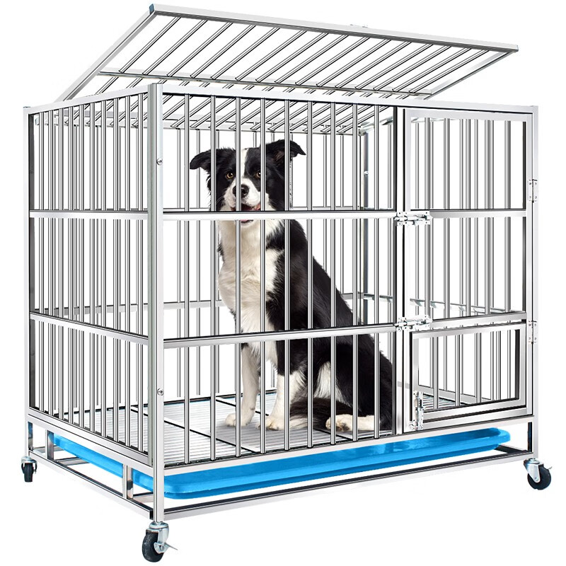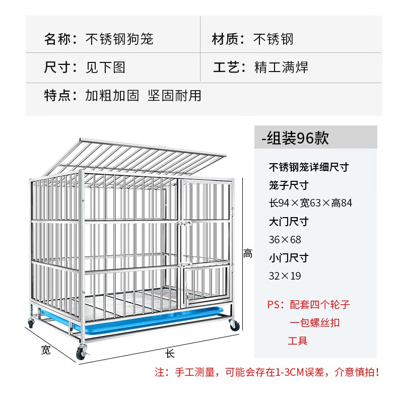憨憨宠 【氩弧焊满焊】不锈钢狗笼中型小型犬狗笼子猫笼宠物狗狗笼子狗屋金毛拉布拉多柯基法斗用品 组装款-长94*宽63*高84cm带喂食门