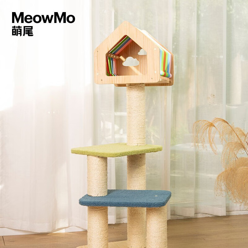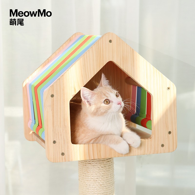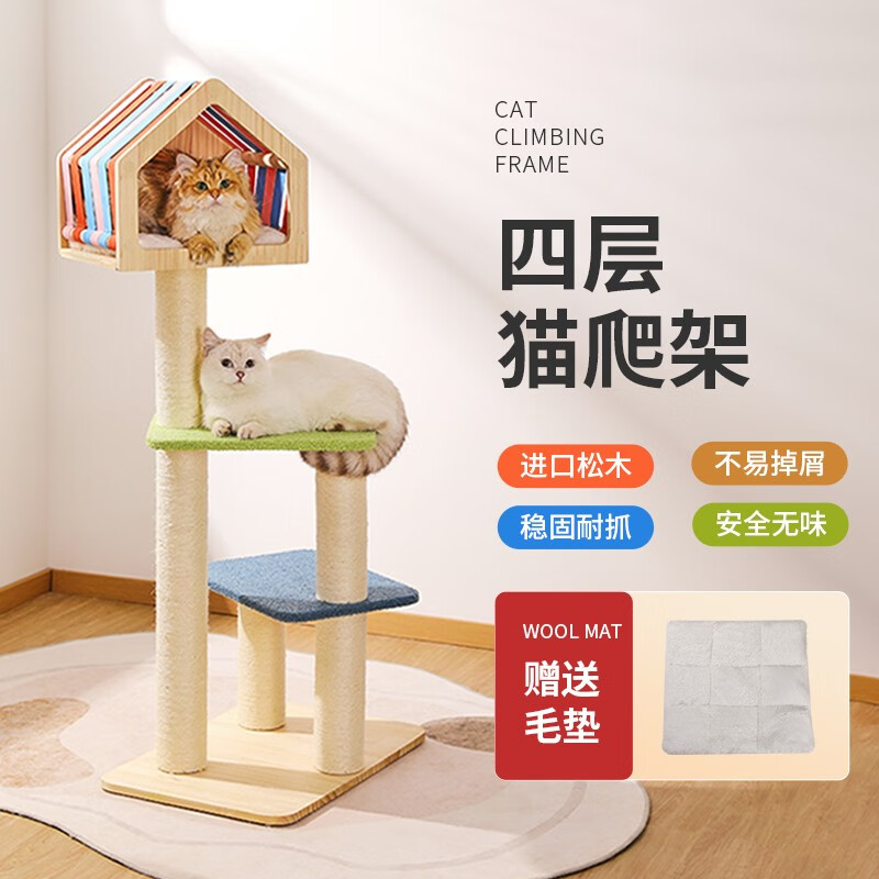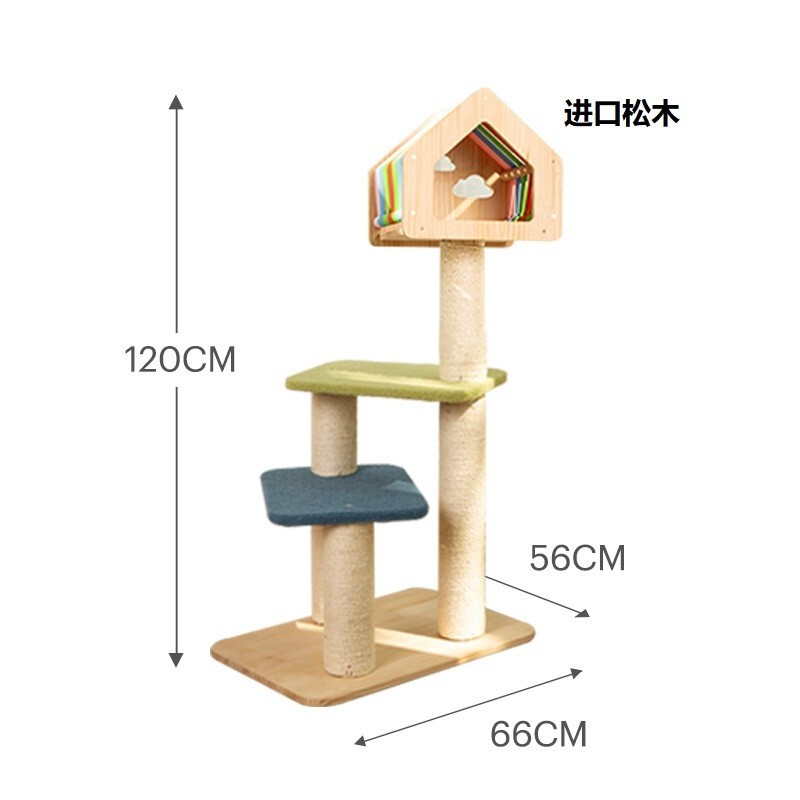 守爱【升级加固 送货上门】猫爬架猫架猫窝猫树猫跳台一体大型实木猫抓板剑麻耐磨猫架子猫玩具猫咪用品 彩虹云朵猫爬架(全进口松木材质)