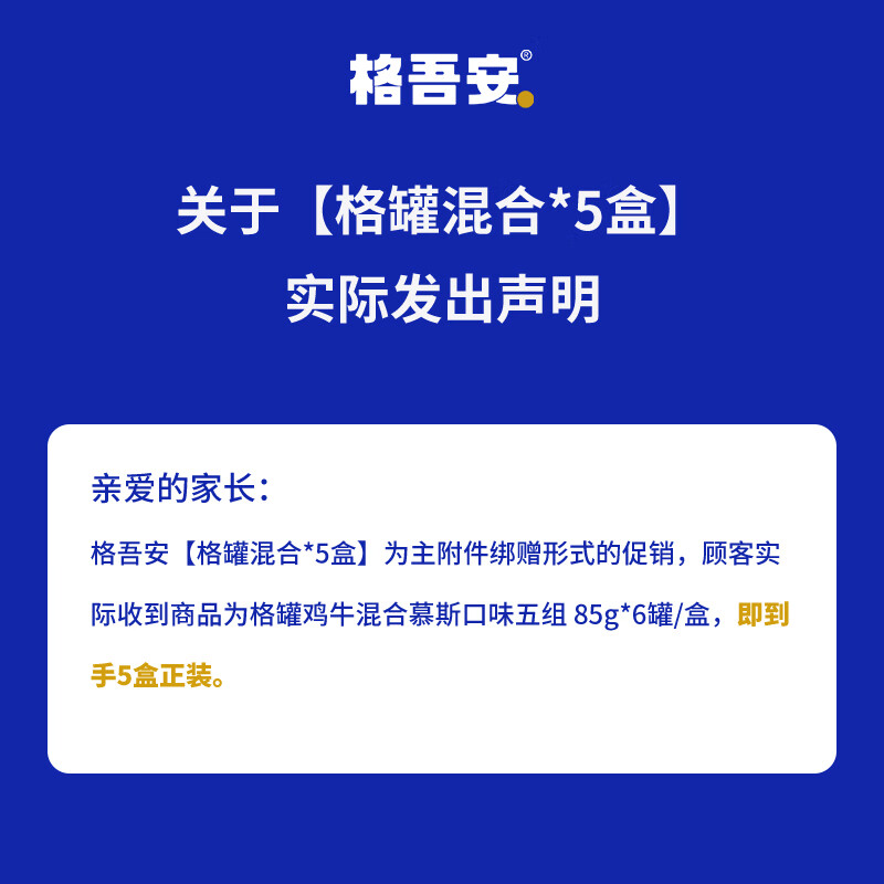 格吾安 格系列全价鲜肉猫主食罐头鸡牛混合6罐*5盒【实发5盒(含附件)】