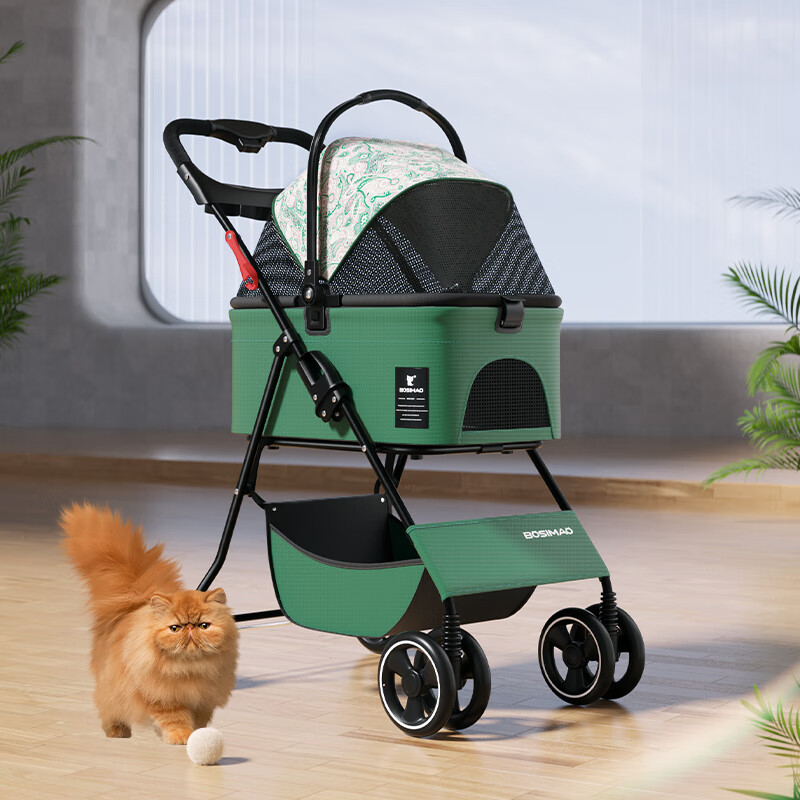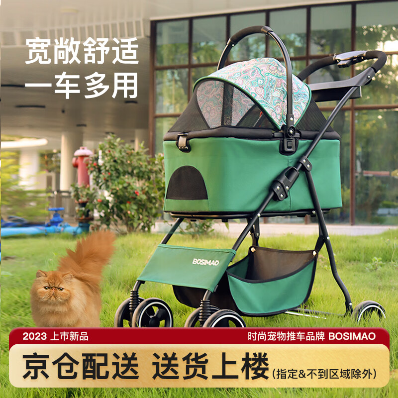 BOSIMAO宠物推车狗狗手推车可折叠分离小型犬猫咪外出便携宠物车溜狗拉车 官绿【建议承重30斤内宠物】