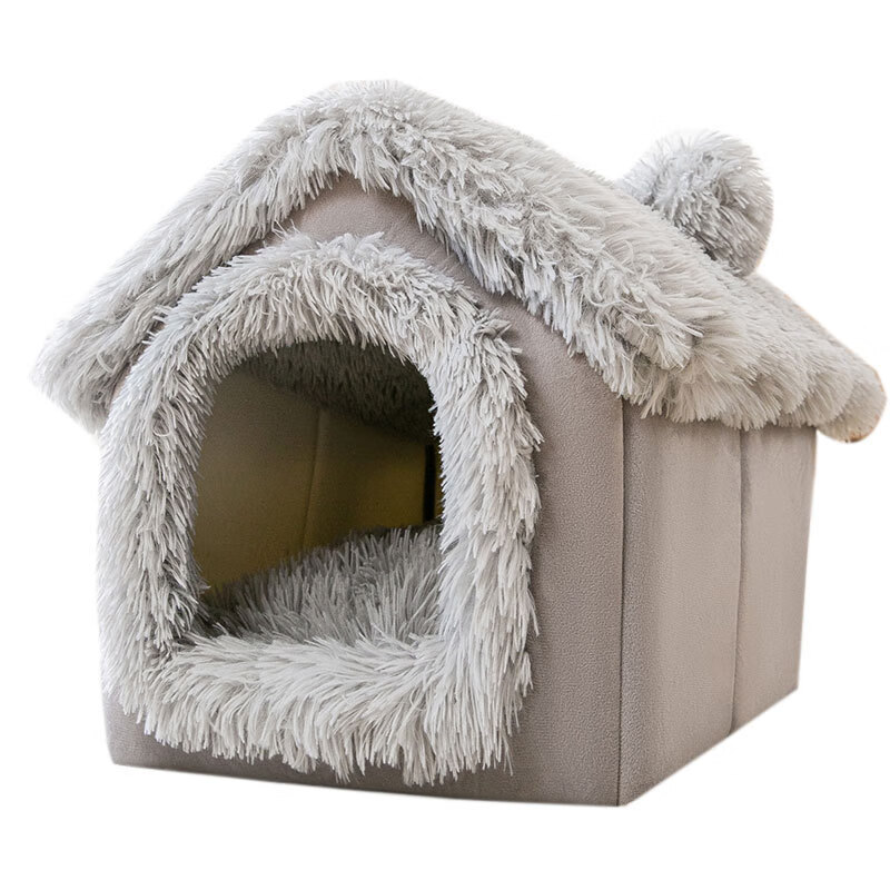 爱它乐猫窝冬季保暖四季通用房子型床屋别墅封闭式冬天狗窝宠物猫咪用品 灰色小房子S