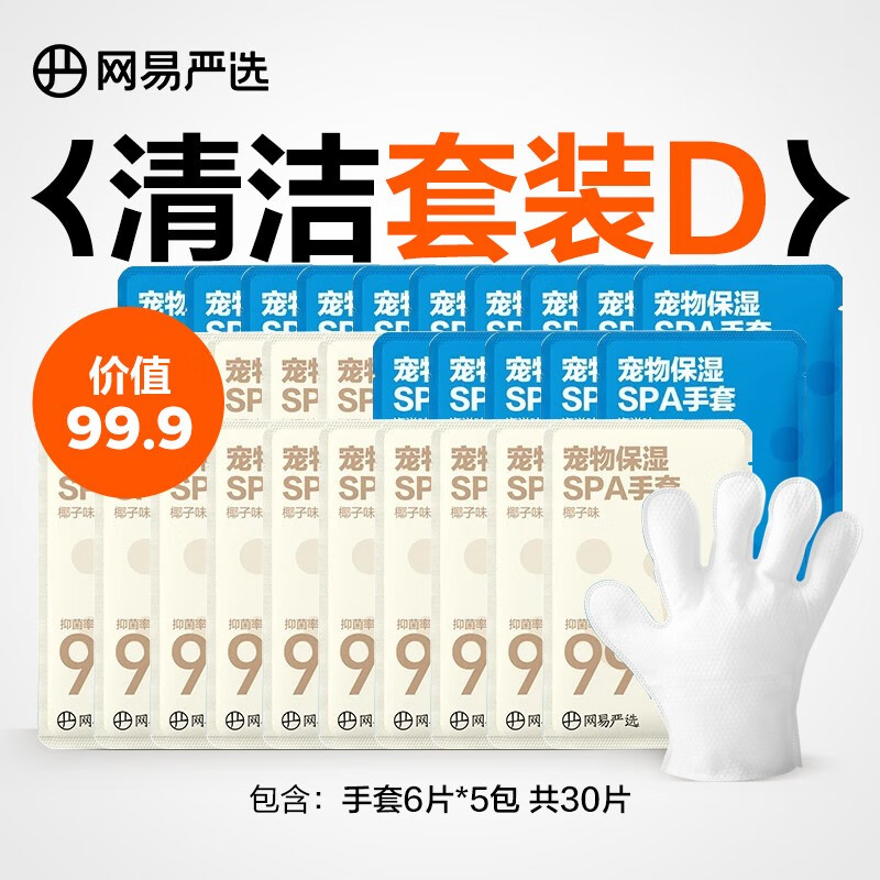 网易严选 宠物免洗手套清洁擦脚猫咪湿巾狗狗洗澡洗猫用品干洗神器 6片 猫犬通用* 5包 共30片