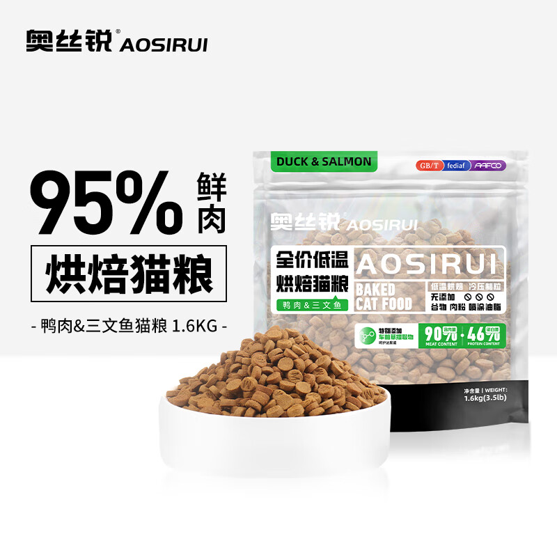 奥丝锐低温烘焙猫粮成猫幼猫鸭肉三文鱼味天然无谷全价猫粮1.6kg