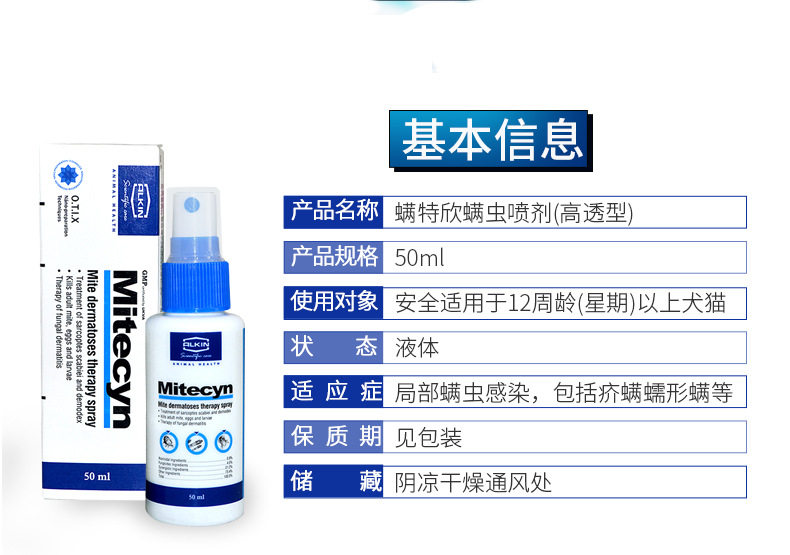 宠物埃尔金螨特欣螨虫喷剂50ML狗狗疥螨蠕形螨犬猫咪皮肤红疹掉毛