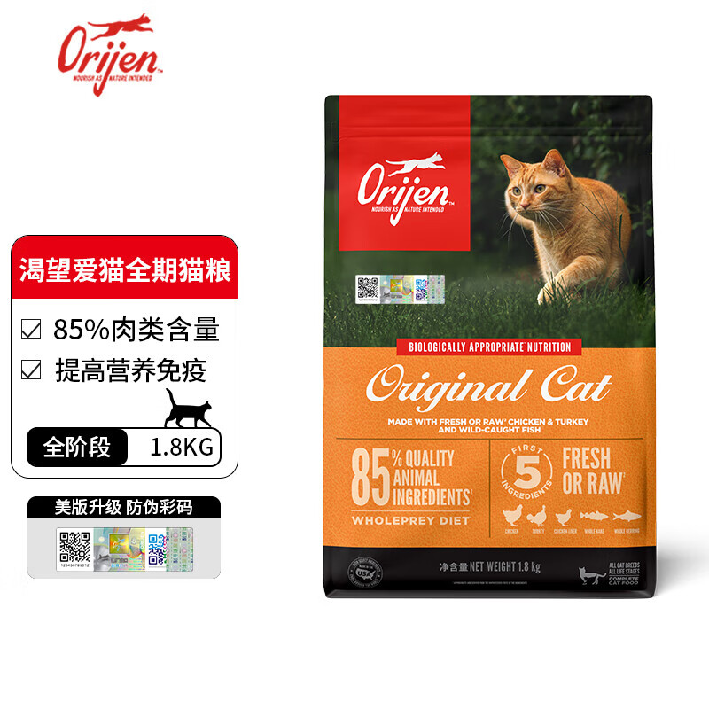 渴望(Orijen)【保税】猫粮爱猫全期成猫幼猫增肥营养进口猫粮蓝猫布偶 升级全鸡肉1.8kg
