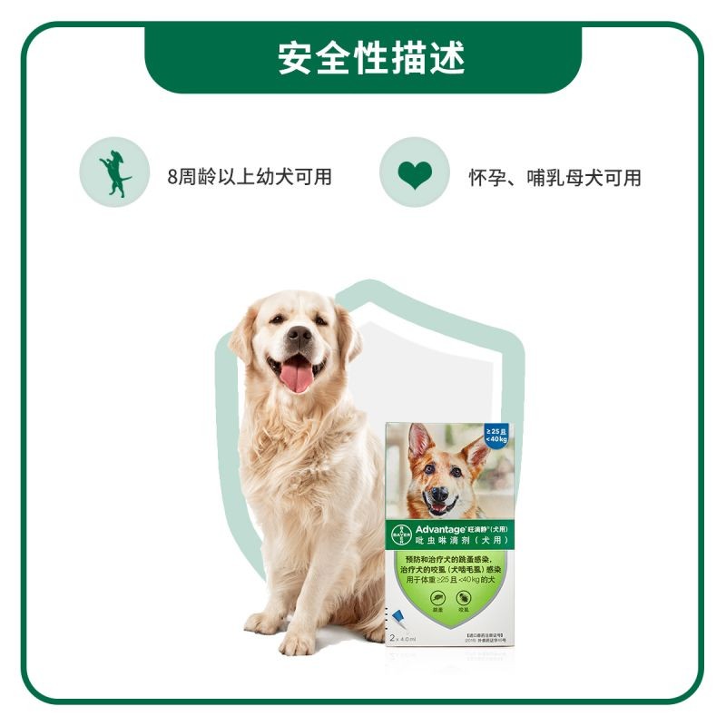 德国进口拜耳旺滴静 狗狗体外驱虫滴剂 室内室外狗狗驱虫防止跳蚤宠物驱虫防护 (≥25kg中大型犬用) 2支装
