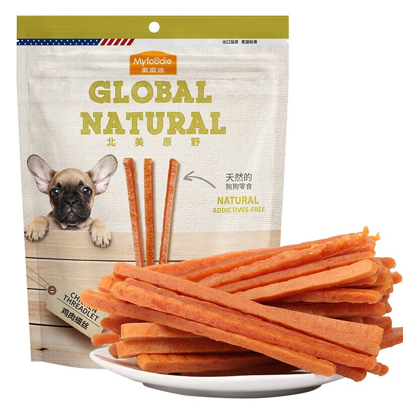 麦富迪 狗零食鸡肉细丝 狗狗鸡肉切丝 北美原野狗零食新旧包装交替发货鸡肉条 细丝组合360g*3袋
