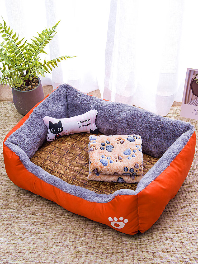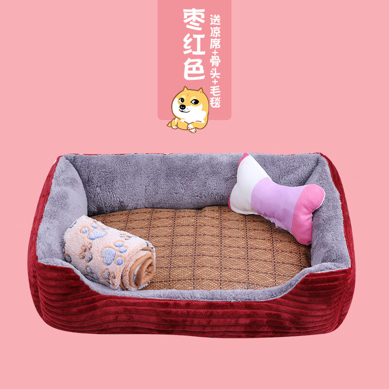 君哲宠物狗窝猫窝 宠物窝睡袋猫房子舒适幼犬床狗窝猫窝四季柔软蛋挞窝 枣红色单窝 65*50(建议25斤内)