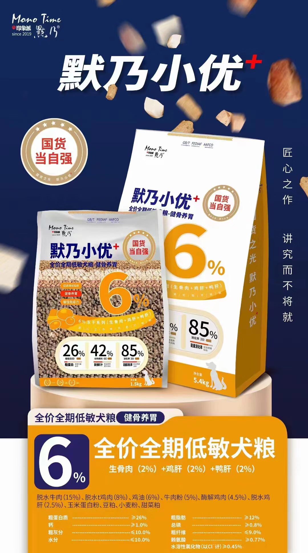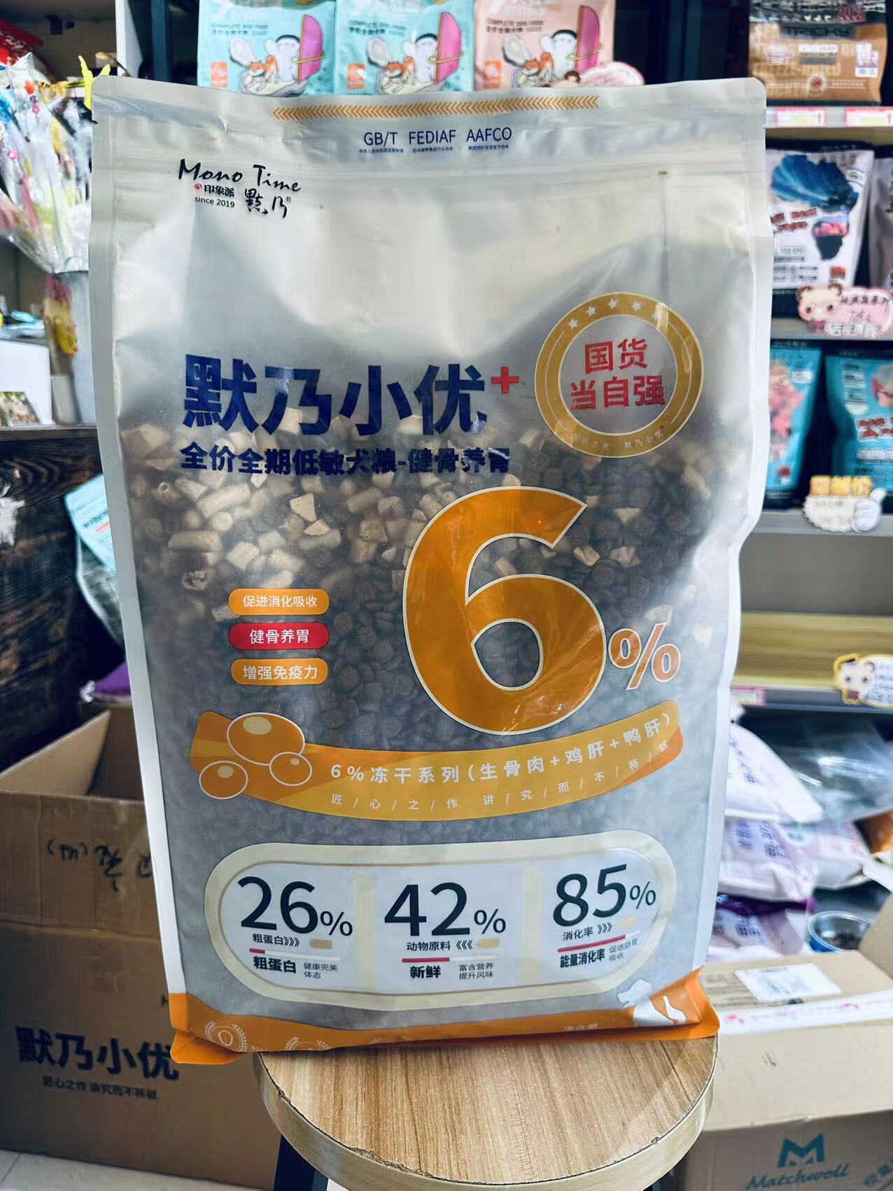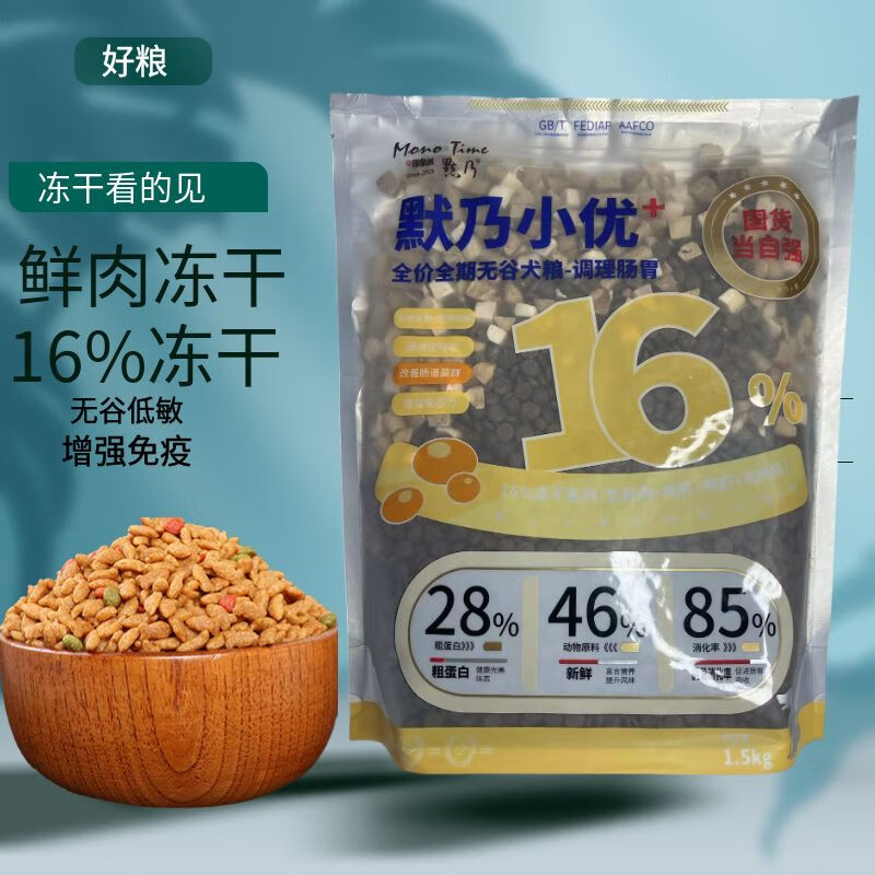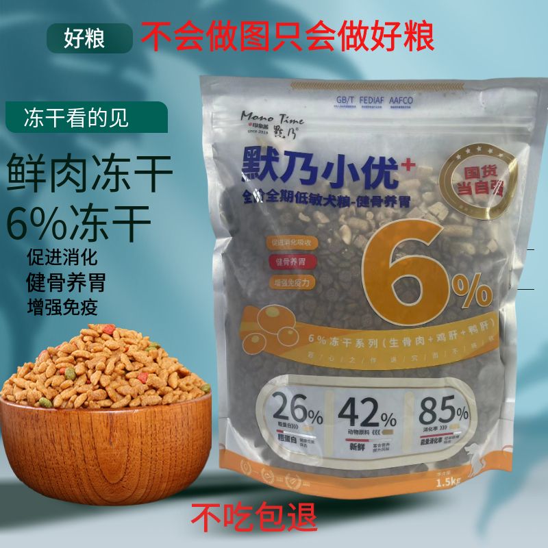 默乃小优 犬粮16%冻干全价全期低敏狗粮健骨养胃成犬小型犬幼犬 默乃小优全价全期低敏 6% 冻干促进吸收养胃粮1.5kg