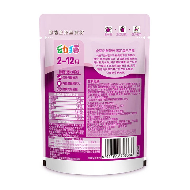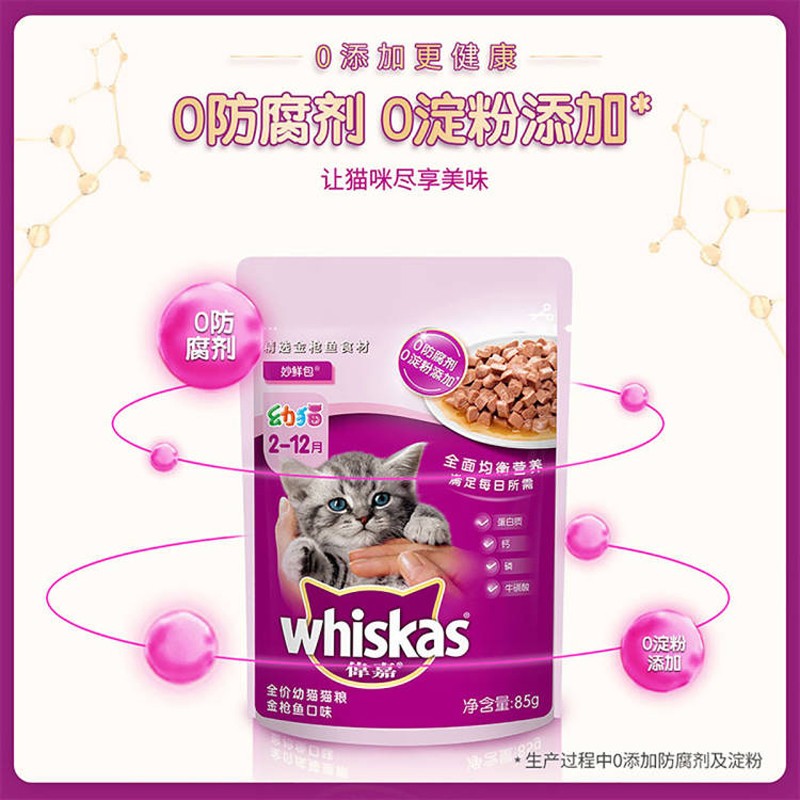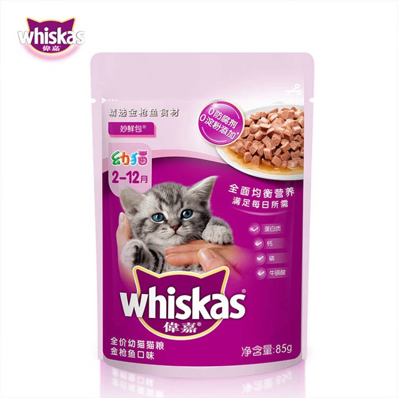 伟嘉 猫零食 2-12月龄幼猫妙鲜包 猫湿粮软包餐包秒鲜包 软包猫罐头全价湿粮 85g 金枪鱼 12包