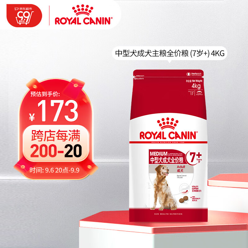 皇家(ROYAL CANIN)狗粮中型犬成犬主粮全价粮 (7岁以上) 护初老4KG