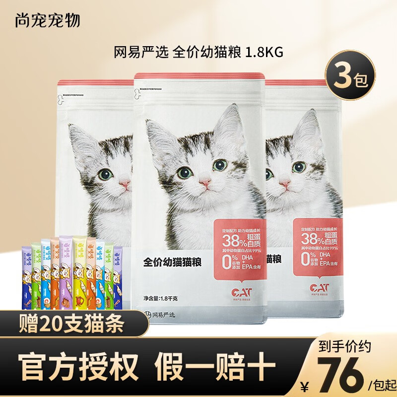 网易严选猫粮2kg 全价冻干猫粮成猫猫粮幼猫猫粮无谷粮冻干粮猫干粮猫主粮 全价幼猫粮 1.8kg*3包