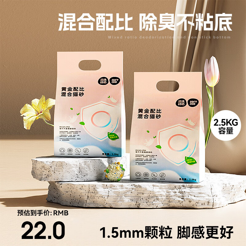 撸宠猫砂 膨润土豆腐混合猫砂6L