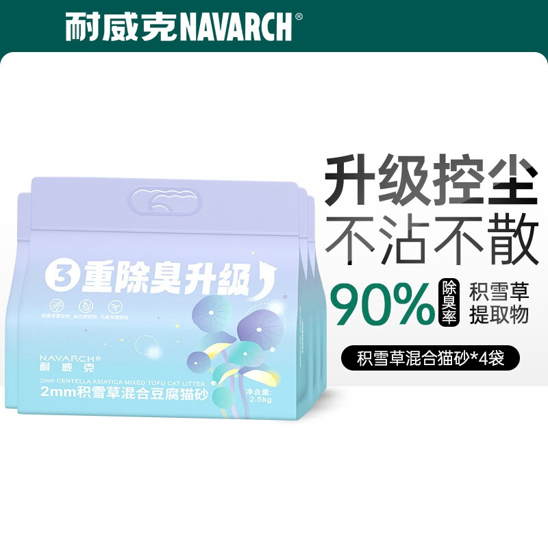耐威克 猫砂 绿茶豆腐结团猫砂 低粉尘易溶吸水遮臭植物豆腐猫砂 积雪草混合砂*4包丨10kg