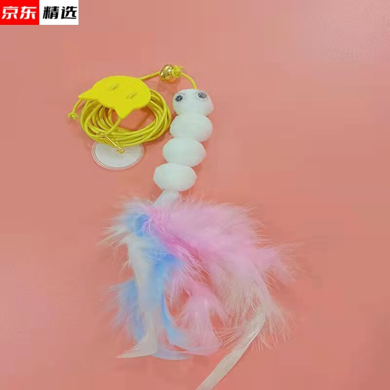 新型秋千逗猫玩具 网红家用挂门逗猫猫咪玩具悬挂式荡秋千无痕铃铛羽毛自嗨解闷神器 撕片羽毛毛虫【绳长2米/ 可调节】-无