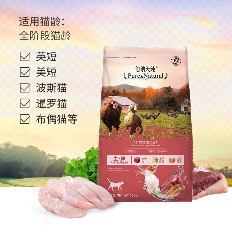 短云【精选推荐】猫粮成猫幼猫全阶段通用猫粮农场派对(鸡 鸭 火鸡)400g
