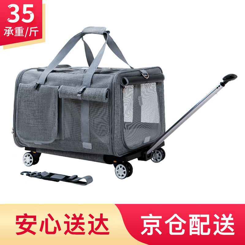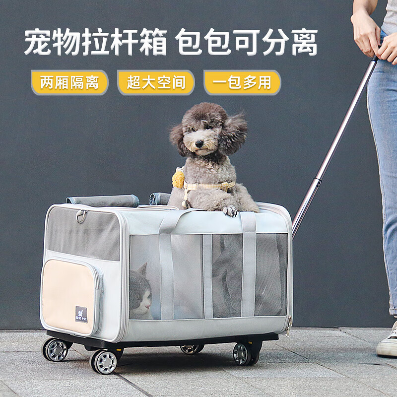 DO DO PET宠物拉杆箱包两厢可隔离航空箱 猫咪外出便携拉杆包出行手提猫包 深灰隐秘款-自带卷帘-拉杆可分离