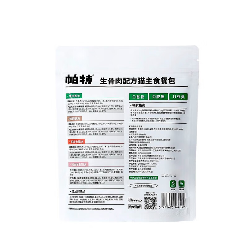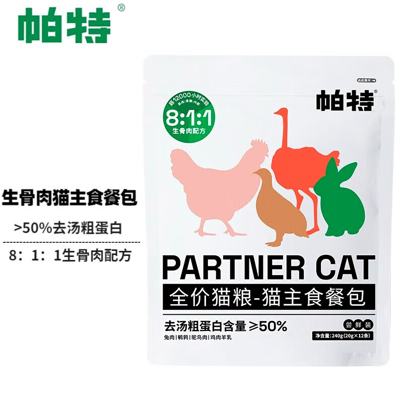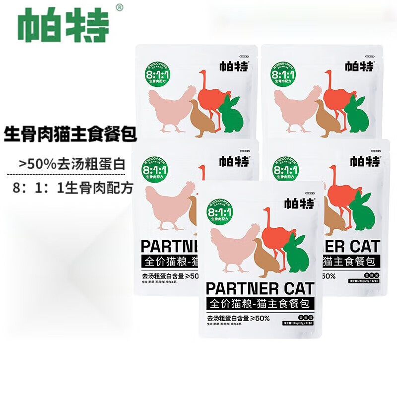 帕特主食餐包全价猫粮猫条猫湿粮生骨肉配方鲜封包 混合口味20g*60支(共5袋)