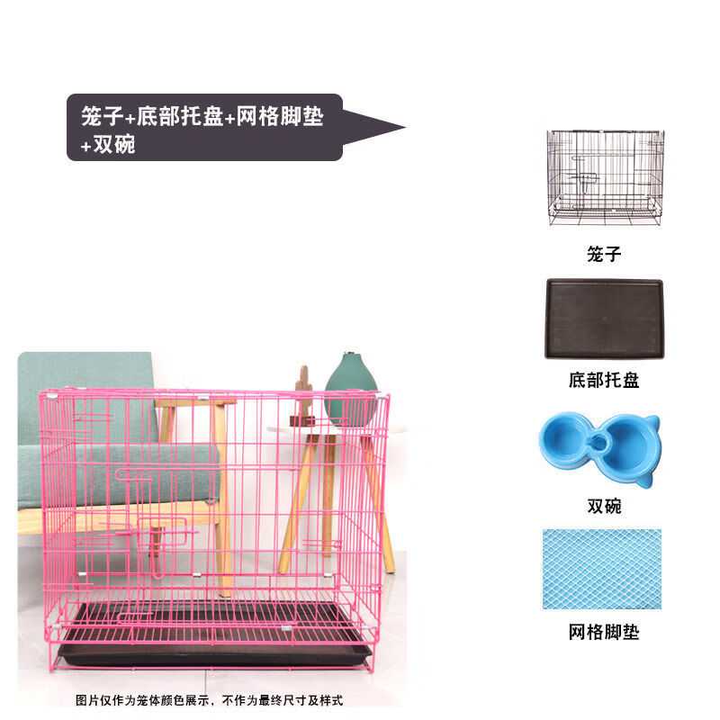 y狗笼子小型犬小狗笼泰迪狗笼带厕所室内外大猫笼子兔笼狗围栏围笼地狼 粉色(带托盘 双碗 网格垫) 70*50*60双门(适12斤左右)