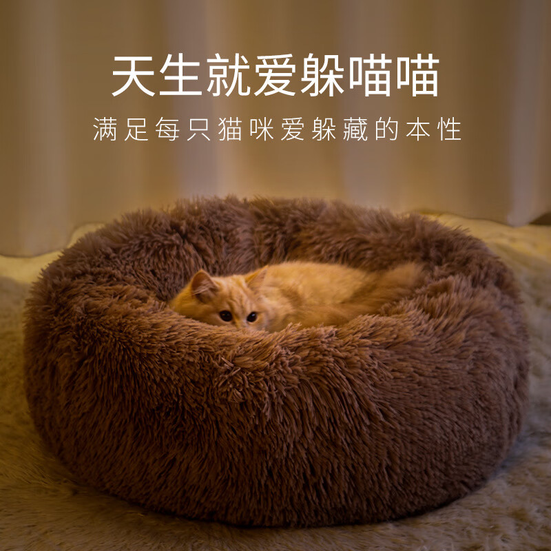 火岩熊 冬季保暖猫咪窝踩奶长毛绒宠物窝不拆洗窝猫狗垫猫床猫窝猫咪用品 扎染紫 S-适用体重7斤内