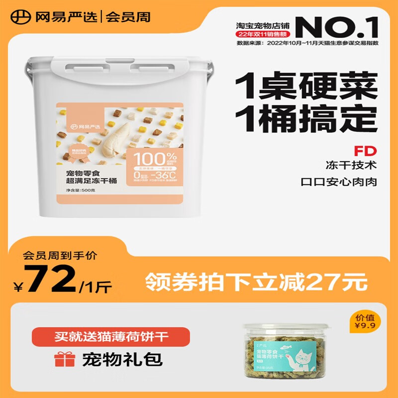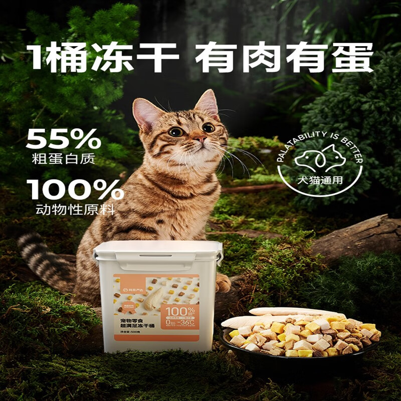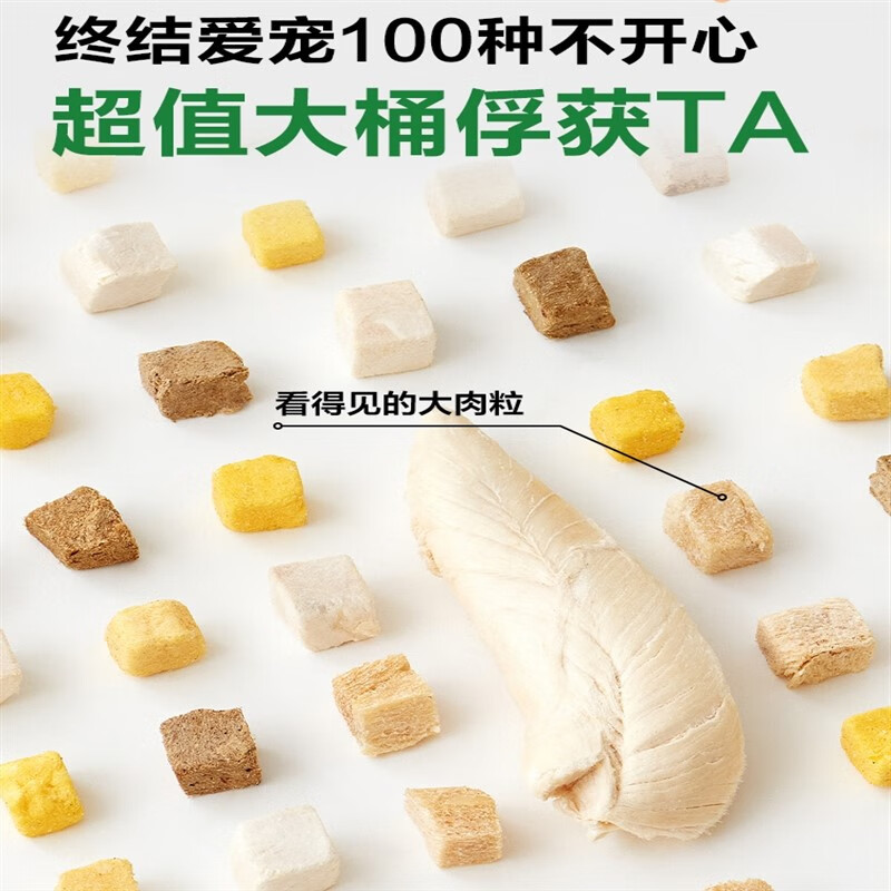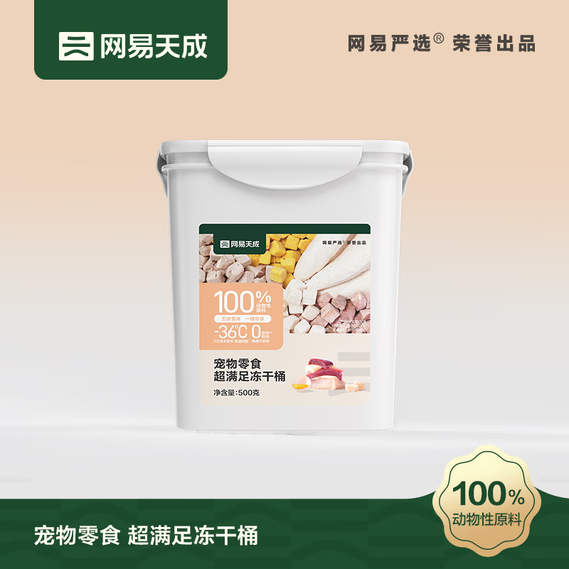 网易严选冻干鸡肉粒鸡胸肉500g桶装宠物猫咪零食条纯肉生骨肉猫粮 5拼冻干500g 1盒