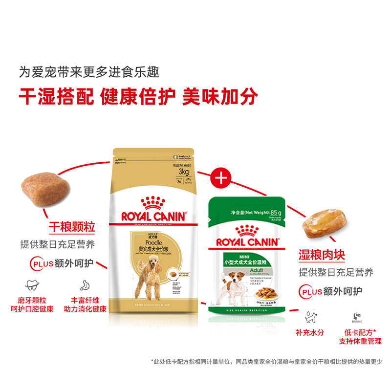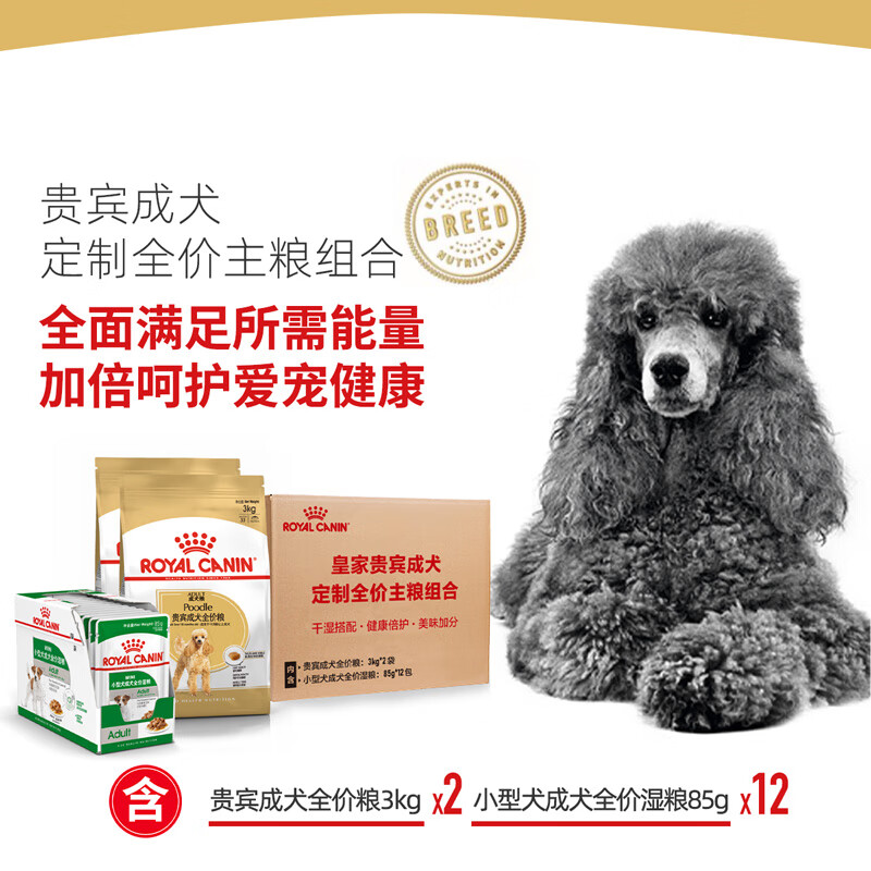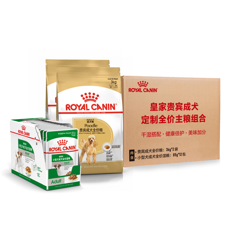ROYAL CANIN 皇家犬粮 贵宾成犬定制全价粮 干湿组合(PD30 3KG*2 MIAW 0.085KG*12)