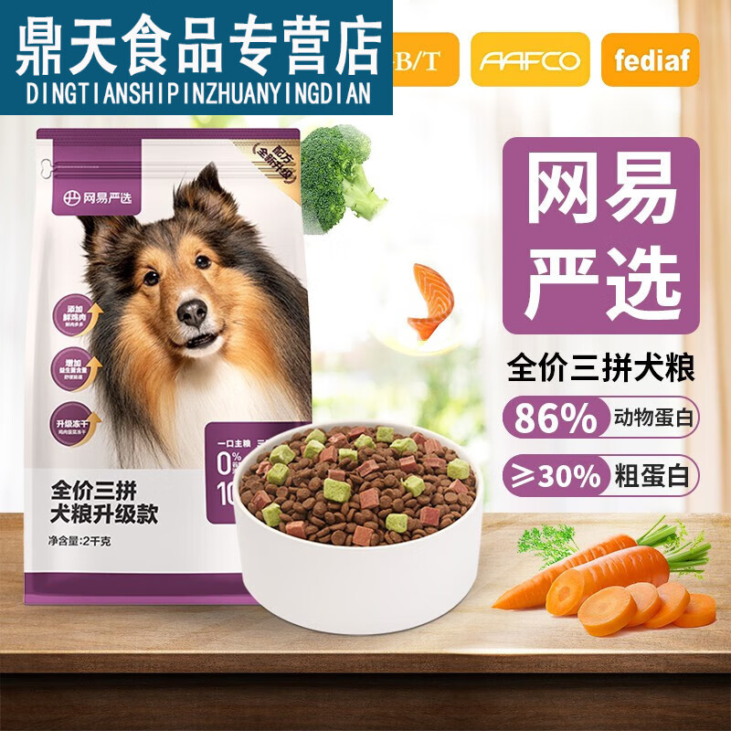 网易严选【官方授权】宠爱相伴 冻干三拼全价狗粮成犬幼犬通用型宠物主粮 冻干三拼犬粮2KG 1包尝鲜
