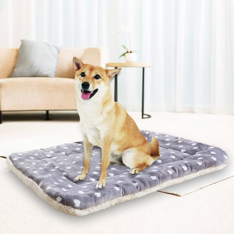 贝尼宠 狗垫子 大型犬冬季狗窝保暖毛毯宠物垫子金毛拉布拉多大中小型犬通用狗狗垫子 狗垫子-浅灰爱心款毛毯秋冬 大号:长98CM*75CM