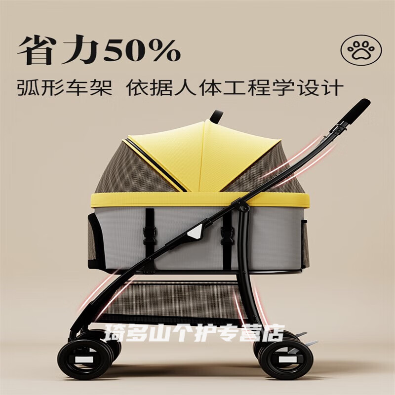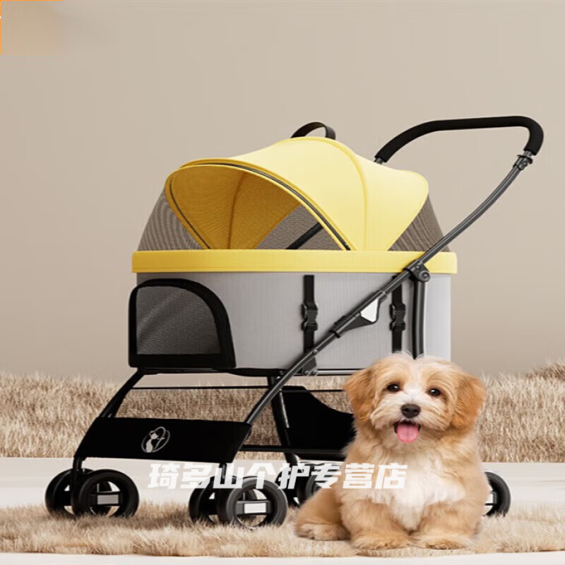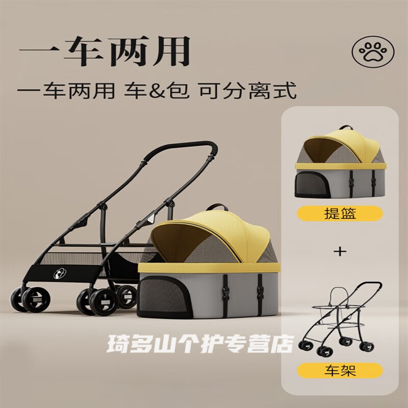 酷奇宠MDG宠物推车狗狗猫咪外出小推车可分离可折叠轻便小拉车遛狗溜猫 活力黄-升级款 【可分离可折叠