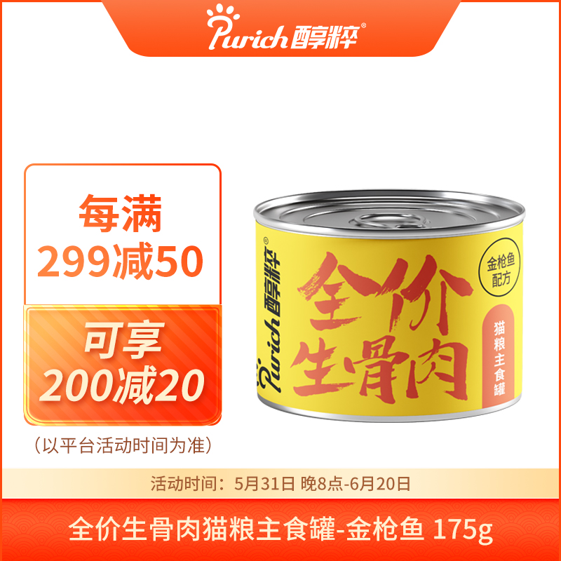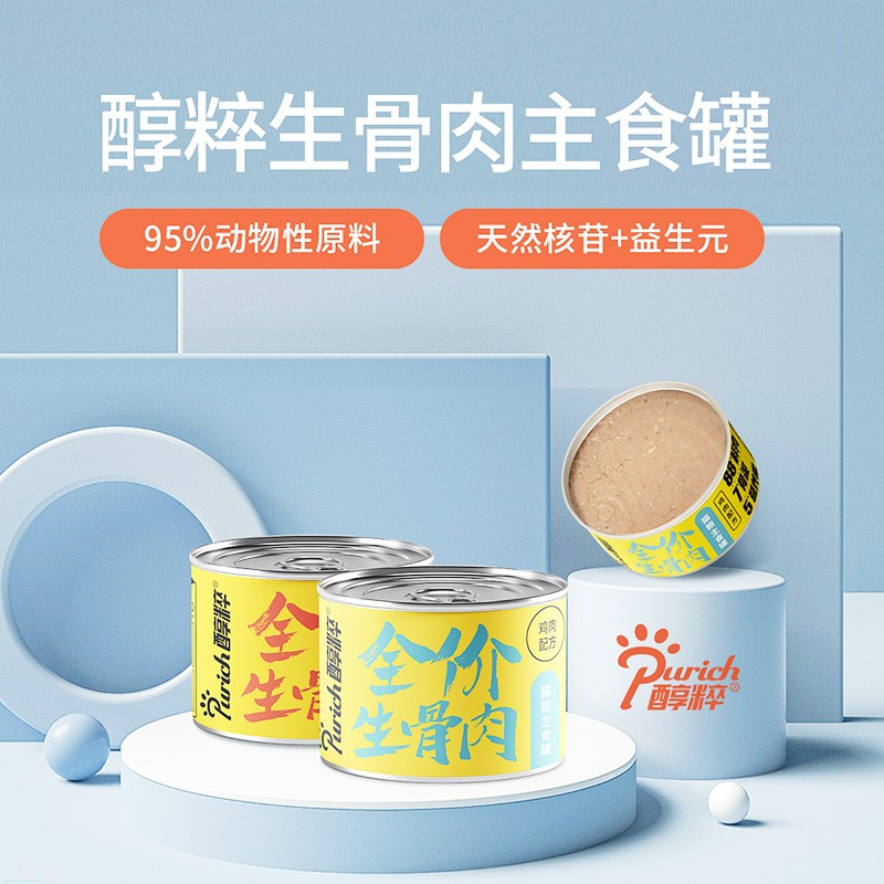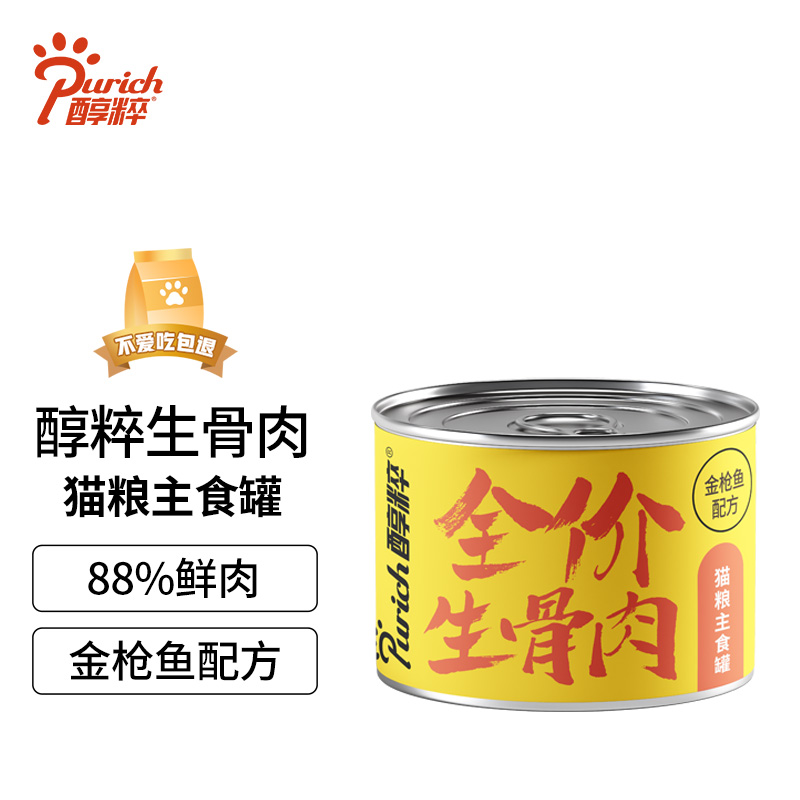 醇粹全价生骨肉猫主食罐宠物金渐层折耳英短猫咪可拌粮美味湿粮罐头 175g(金枪鱼)