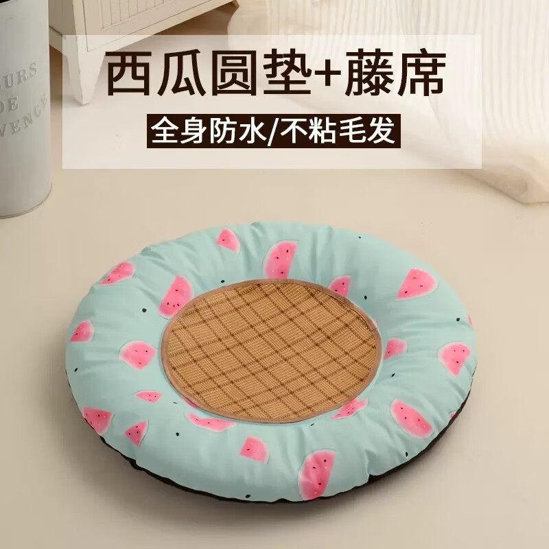 汪汪部落猫狗垫子睡垫圆形狗窝四季防水不沾毛宠物用品睡觉用地垫猫窝垫子 圆形清凉西瓜 凉席 S(适合5斤内犬猫)