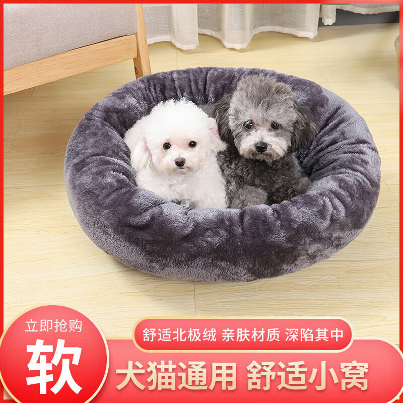 妙普乐猫窝冬季保暖四季通用冬天狗窝小泰迪猫咪用品宠物床睡觉垫子 浅灰色 XS适合1斤内宠物(直径30cm)