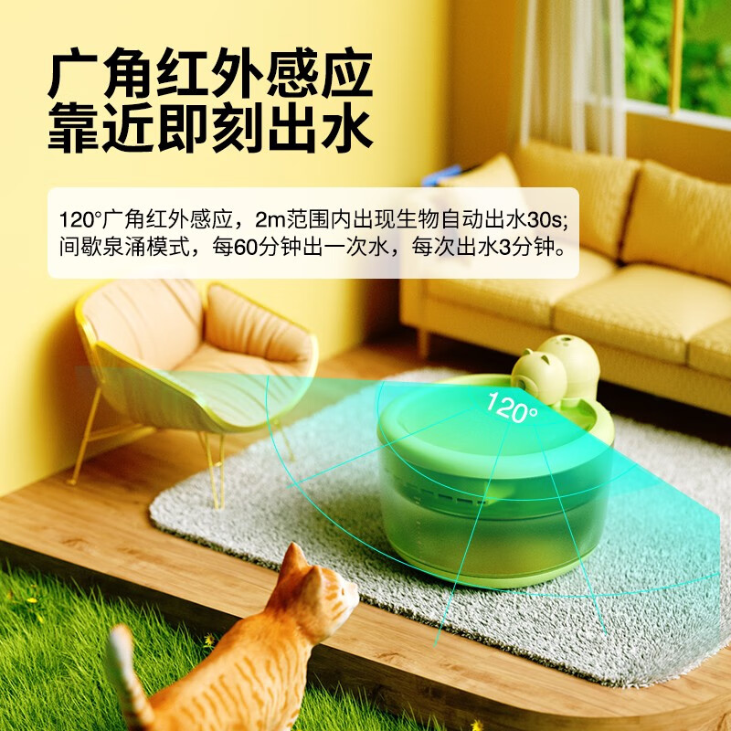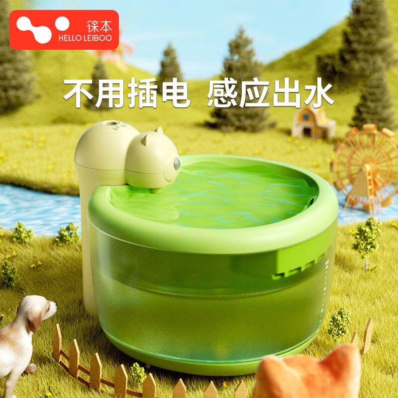 HELLOLEIBOO徕本 猫咪饮水机智能自动循环不插电无线感应喂水器宠物狗狗饮水 小熊饮水机丨绿色