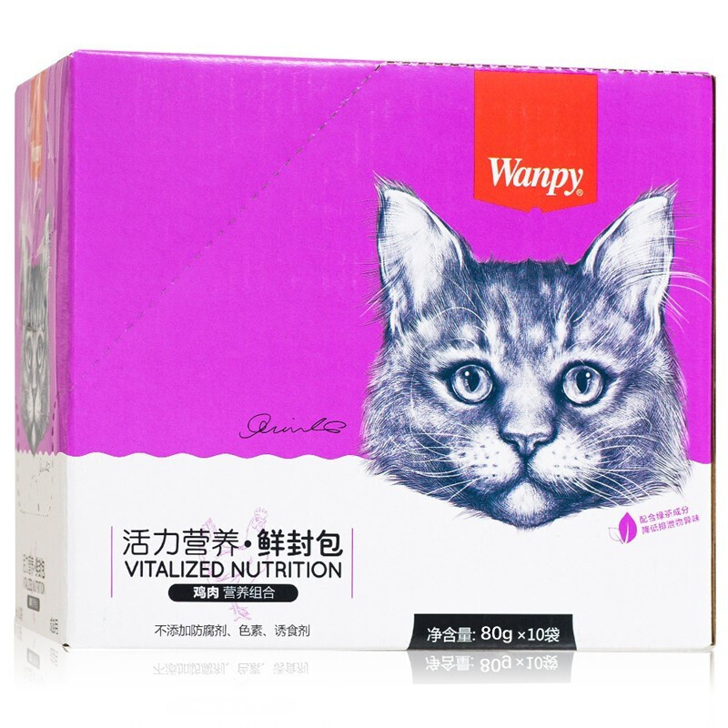 顽皮(wanpy)猫咪鲜封包活力营养宠物猫粮肉粒包猫湿粮猫罐头整盒 鸡肉配方80g*10