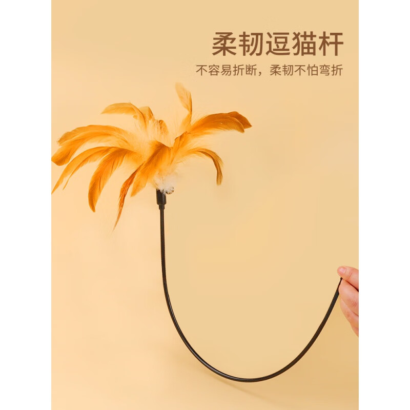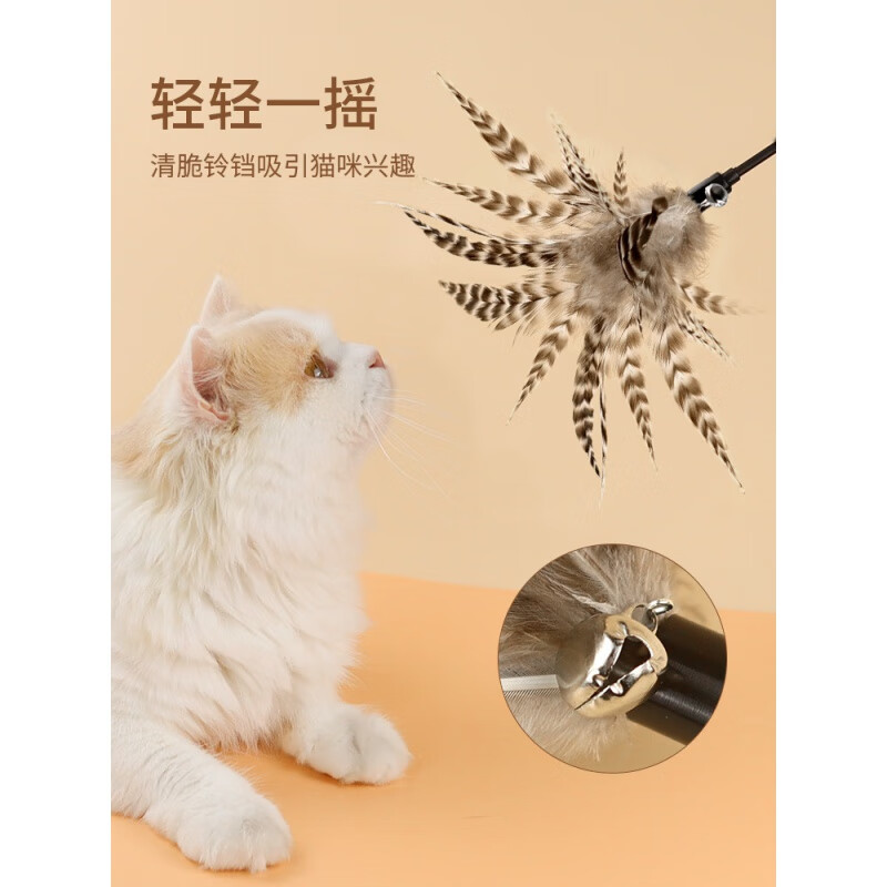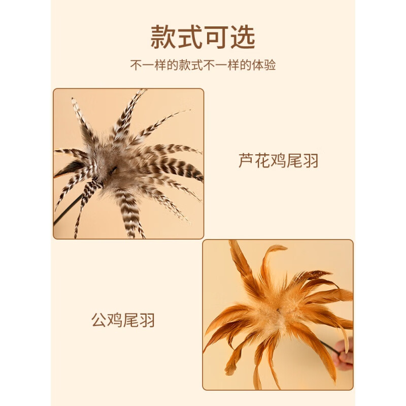 无毛猫逗猫棒羽毛猫咪玩具芦花鸡公鸡羽毛自嗨解闷长杆带铃铛逗猫棒 芦花鸡尾羽毛