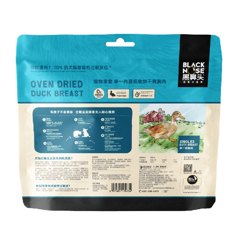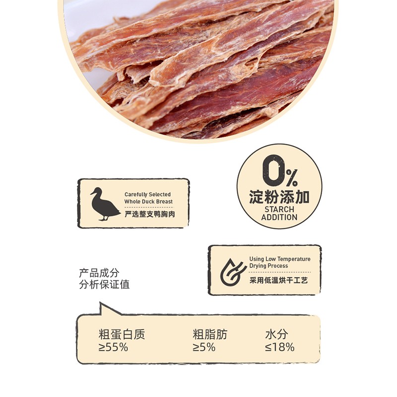 黑鼻头狗狗猫咪零食烘干鸡鸭胸肉干泰迪磨牙宠物零食300g 低敏烘干鸭胸肉300g