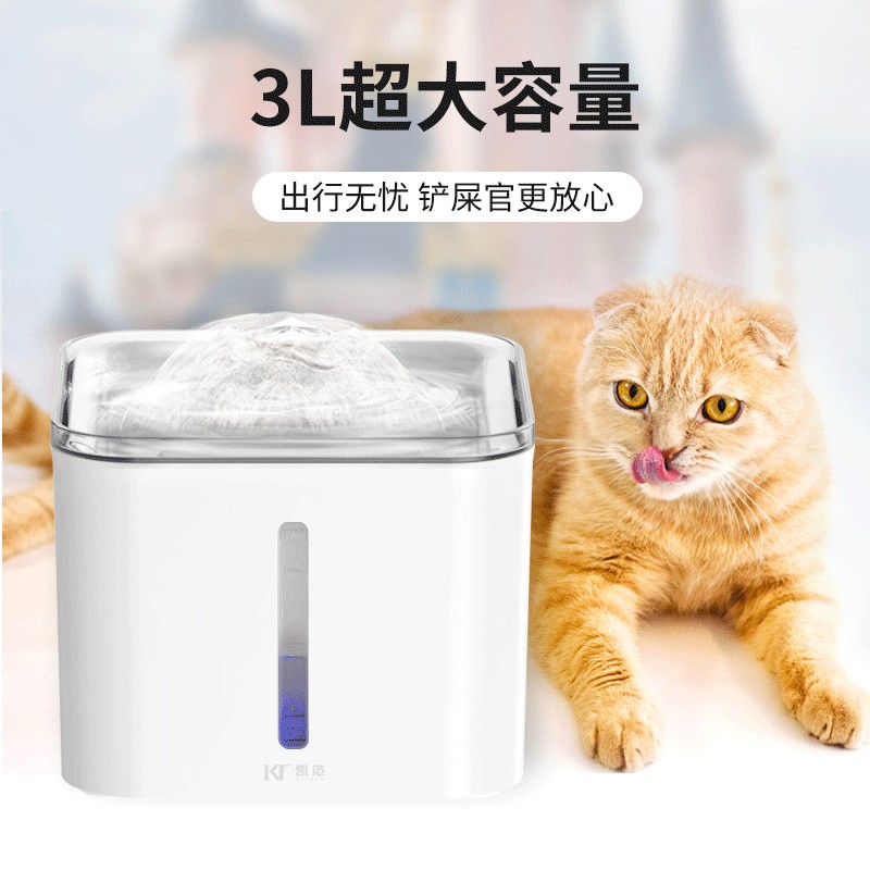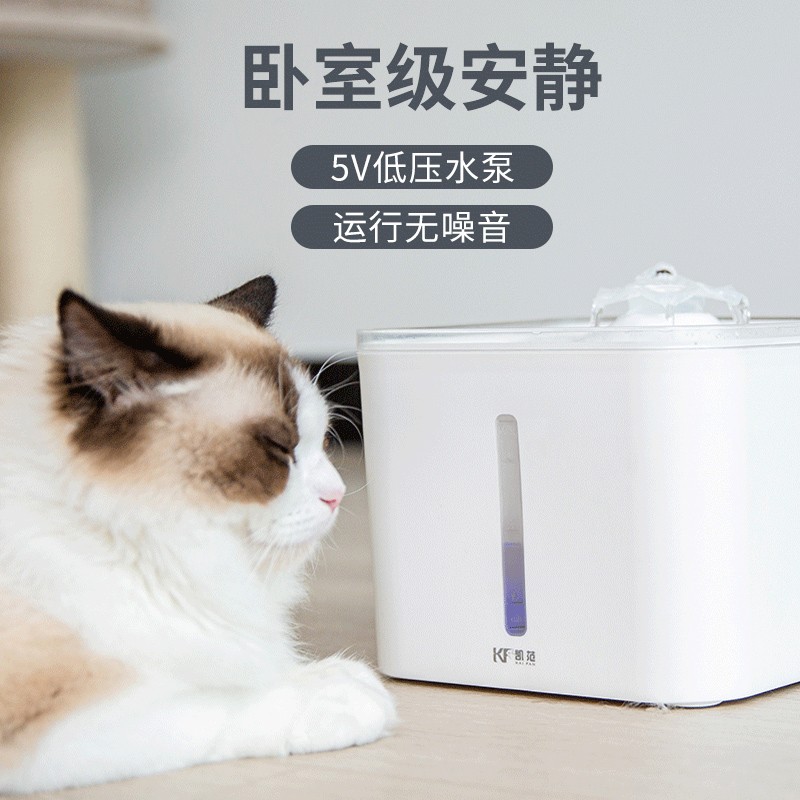 凯范猫咪饮水机自动循环流动水宠物智能用品猫狗喂水器方形高端款-优雅白