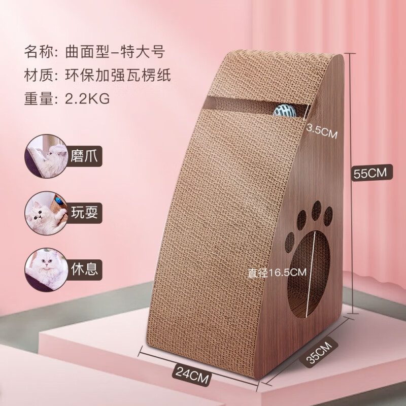 猫抓板猫窝一体耐抓耐磨不掉屑猫爪特大号小猫咪立式玩具用品大全 曲面形-特大号猫薄荷 铃铛球