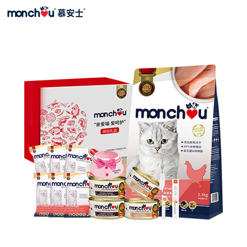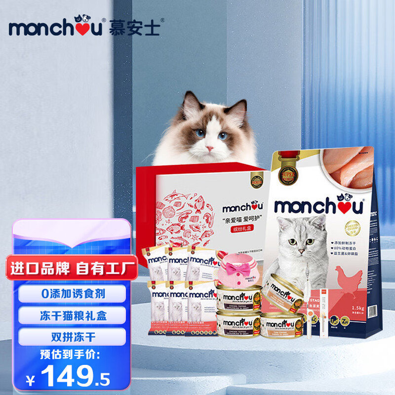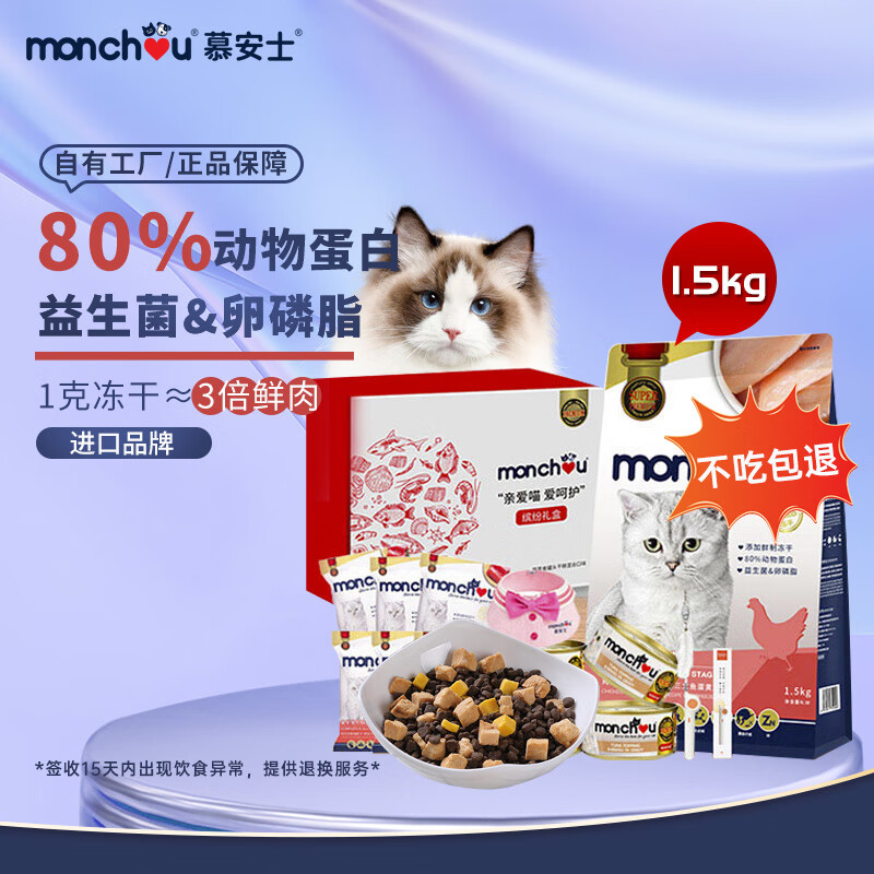 慕安士 monchou 成年冻干猫粮猫罐头 营养套装 猫干粮礼盒 双拼冻干