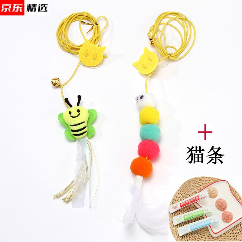 新型秋千逗猫玩具 网红家用挂门逗猫猫咪玩具悬挂式荡秋千无痕铃铛羽毛自嗨解闷神器 小蜜蜂 白羽毛-有5只猫条
