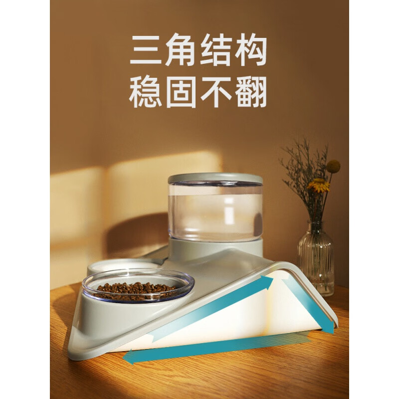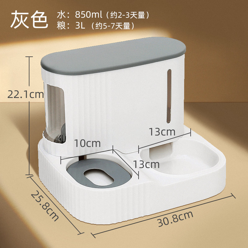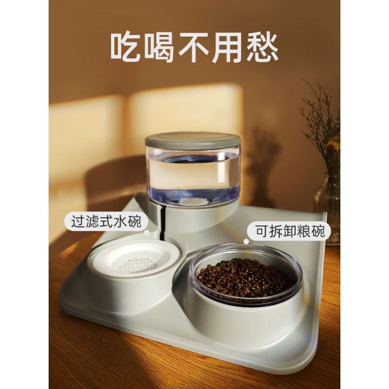 珊野 猫碗狗碗双碗食盆自动饮水饭盆猫粮盆陶瓷喝水防打翻狗狗宠物用品 储粮喂水碗-灰【水壶800ml-可存3L粮】 1.8L大容量蓄水;犬猫通用