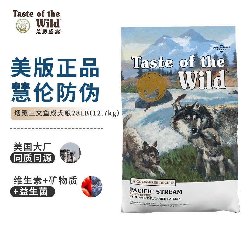 荒野盛宴烟熏三文鱼幼粒配方(全犬粮)无谷通用狗粮 28磅/袋(12.7kg)