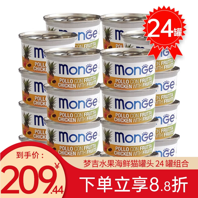 MONGE意大利梦猫罐头吉天然果冻水果金枪鱼成幼猫老年猫湿粮零食 24罐 水果系列 鸡肉 水果