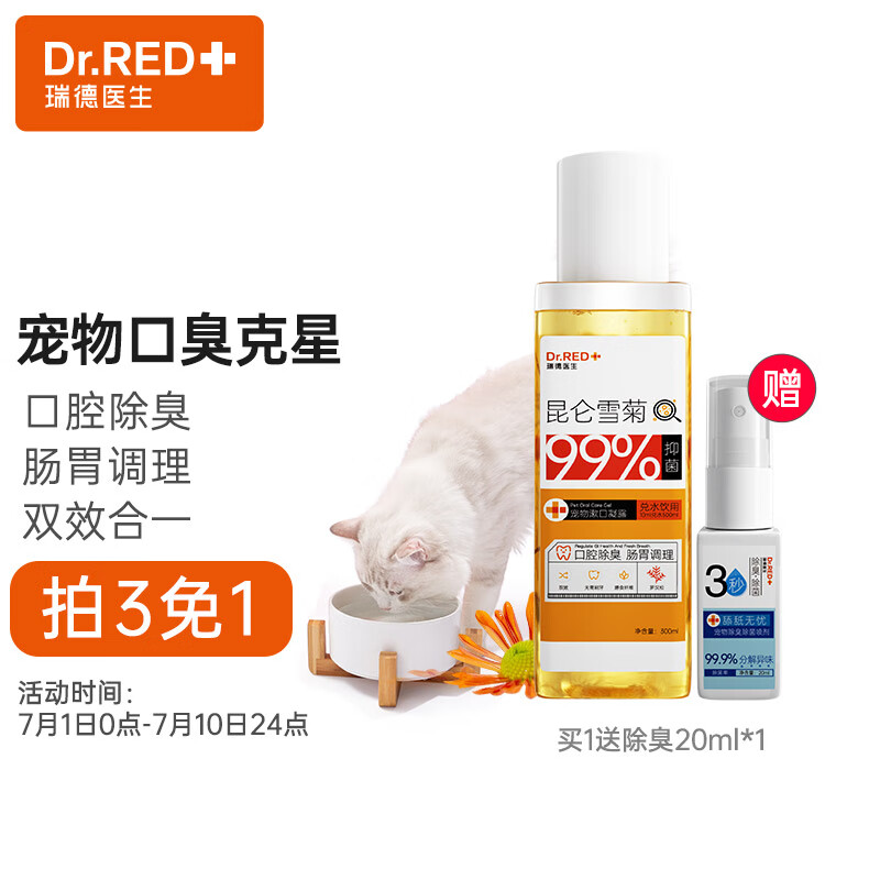 瑞德医生 Dr. Red 宠物【狗狗专用】漱口水除口臭雪菊洁齿水口腔清洁去结石用品 雪菊宠物漱口凝露300ml
