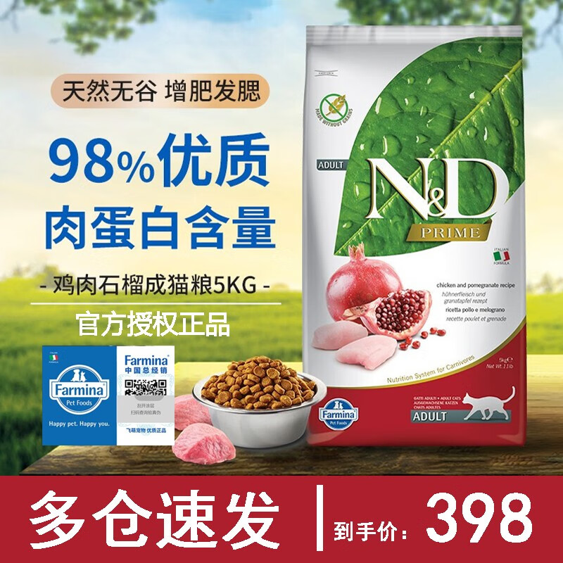 法米娜【飞萌标】猫粮 Farmina意大利进口法明娜天然精华无谷幼猫成猫粮 成猫鸡肉石榴5kg