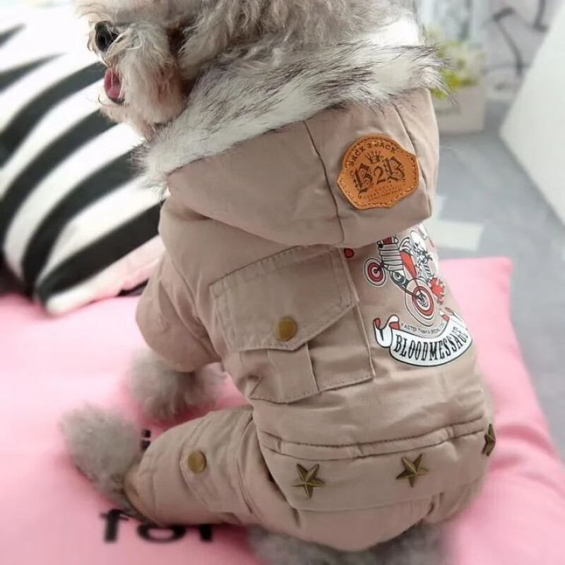 风宠宠物博美比熊雪纳瑞泰迪小狗狗衣服秋冬装冬天冬季加绒棉衣四脚衣 卡其色机车手 xS背长17胸28约1-28斤