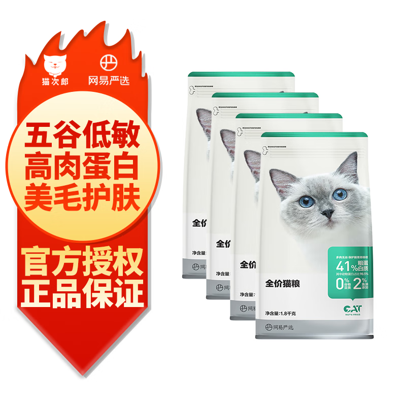网易严选全价冻干双拼猫粮宠物主粮全价天然无谷粮1.8kg 【特惠款】2.0配方猫粮1.8kg*4包