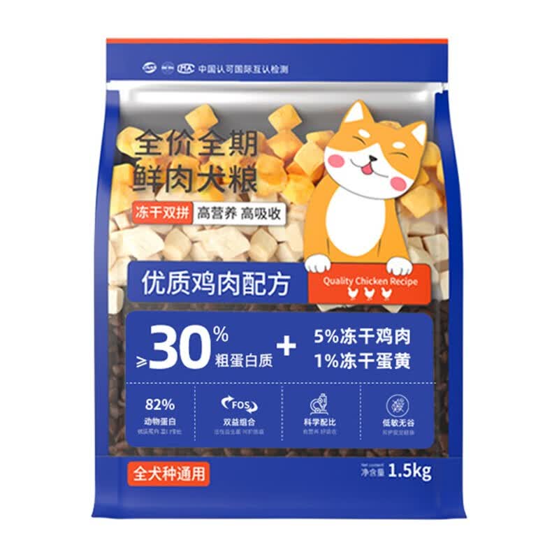 帝熙(DC)冻干双拼狗粮小型犬幼犬成犬泰迪比熊柯基金毛全犬种通用全价狗粮 【0谷物添加】1.5kg